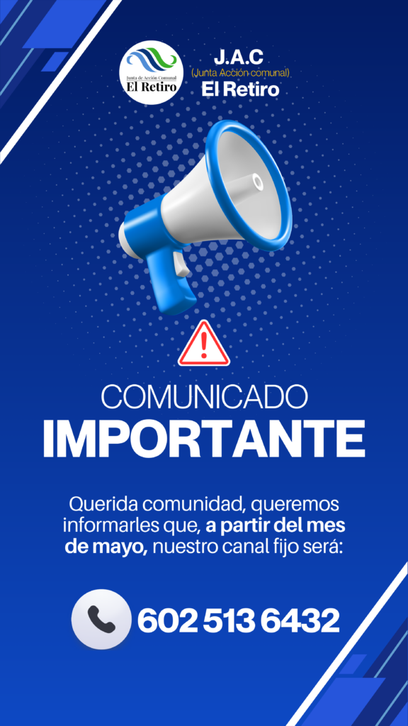 J.A.C El Retiro (Junta de Acción Comunal) informa a toda la comunidad sobre una actualización importante en nuestros canales de comunicación. 📌 Nuevo canal de contacto oficial A partir...
